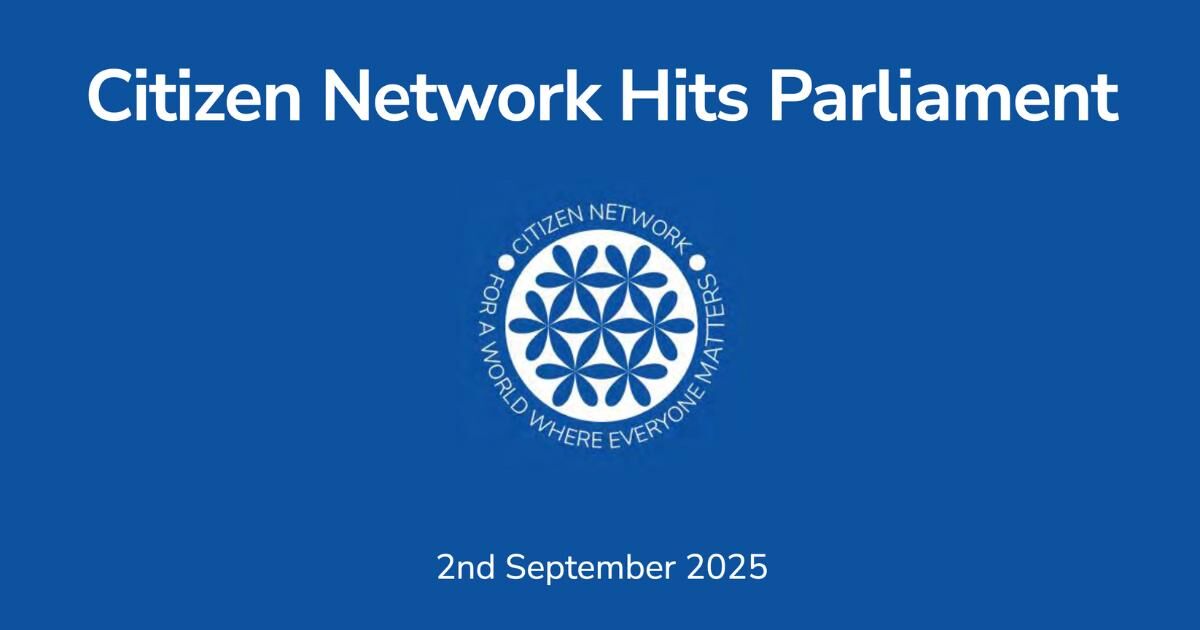 The publisher is Citizen Network. Citizen Network Hits Parliament © Simon Duffy 2025.