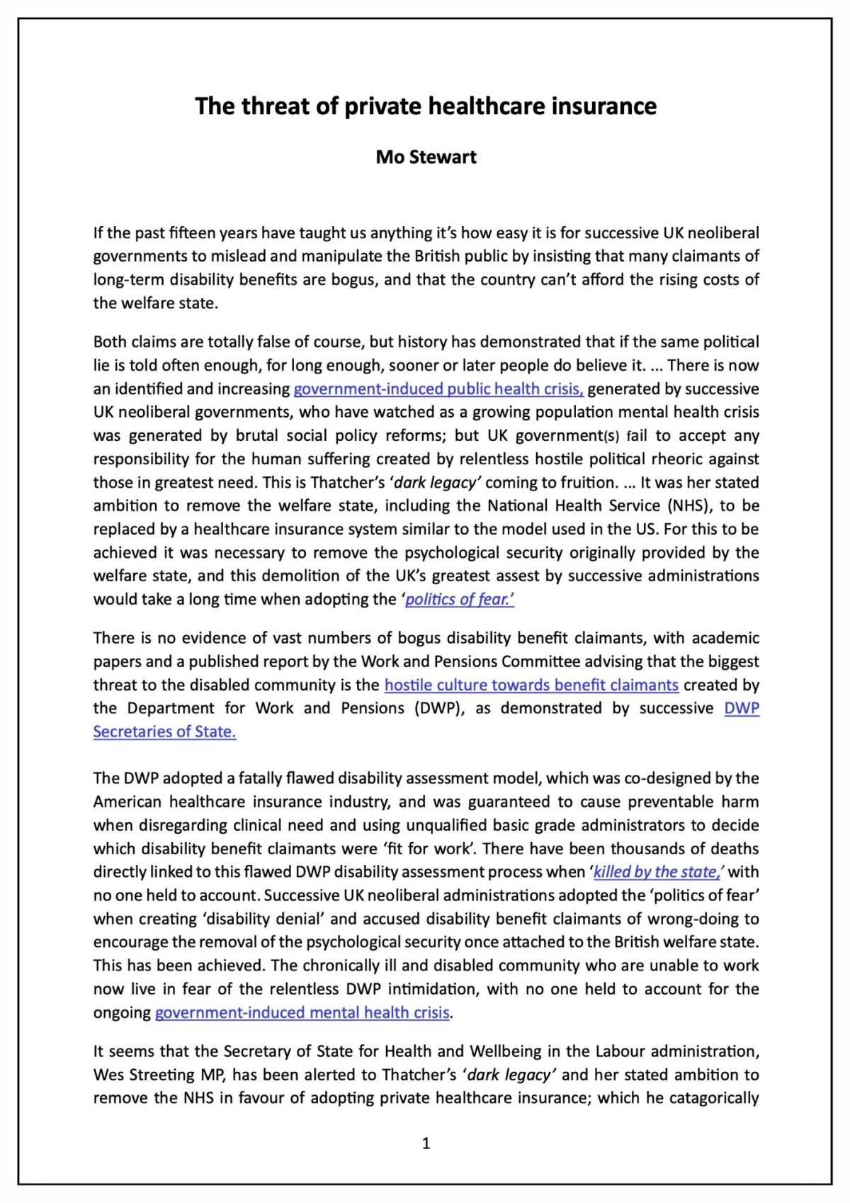 “If the past fifteen years have taught us anything it’s how easy it is for successive UK neoliberal governments to mislead and manipulate the British public by insisting that many claimants of long-term disability benefits are bogus, and that the country can’t afford the rising costs of the welfare state.”