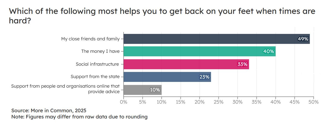 The No Short Cuts report from ICON is clear that more investment than the Pride In Place programme is needed to really change the fortunes of the UK. A survey, cited in the JRF blog, shows us the shape of the challenge. |